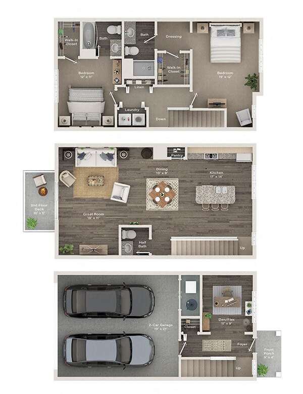 Three Bedroom Townhouse DTH Floor Plan